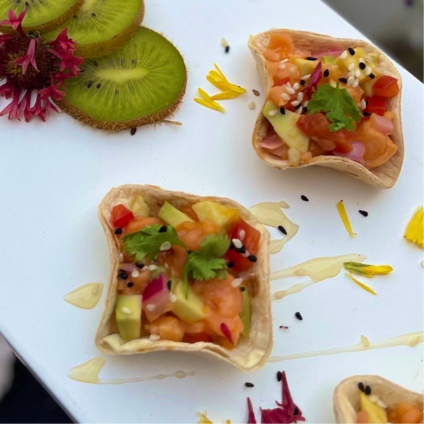 Smoked salmon & mango ceviche tostada 30pc