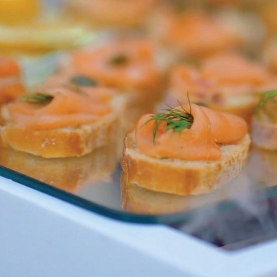 Smoked salmon and caramelized leek crostini 30pc