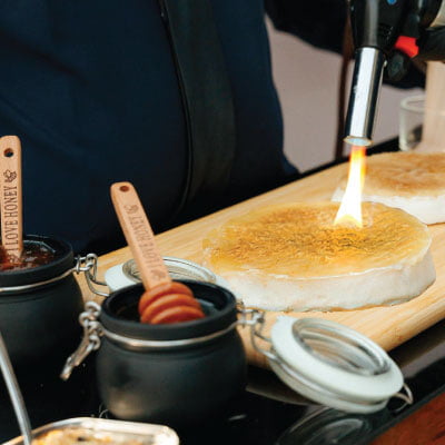 Immerse yourself in the culinary spectacle as skilled chefs prepare authentic paella right before your eyes. Prepare to be captivated by the sights, sounds, and flavors of this beloved Spanish rice dish as it comes to live right in front of your eyes. At the heart of the station is a large, shallow pan called a "paellera."
