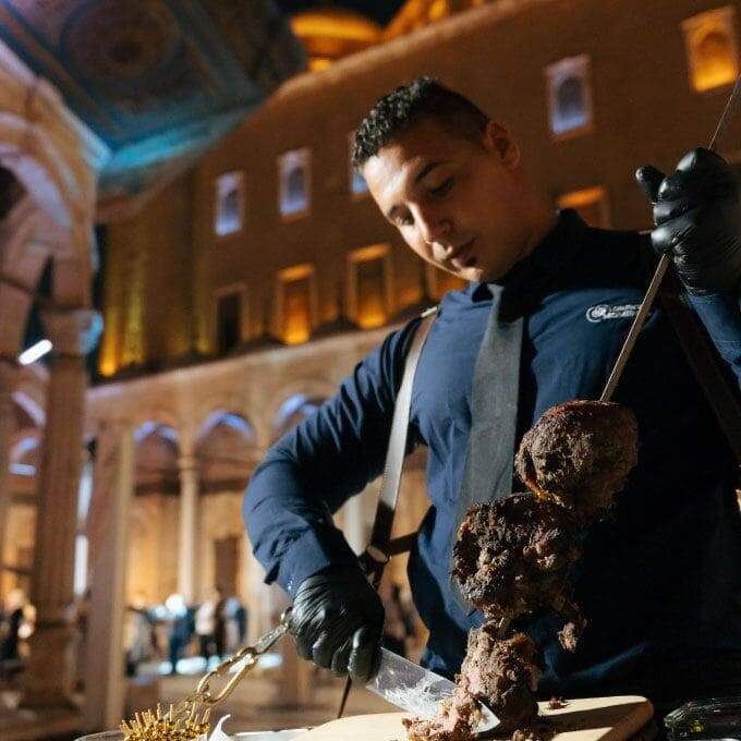A culinary journey that celebrates the rich tradition of Brazilian barbecue and the art of communal feasting. Treat guests to the tantalizing aroma of sizzling meats and the lively atmosphere of celebration. The rodizio-style service features a parade of expertly prepared meats carved to your guests by skilled "espeto corrido" passadores (meat servers).